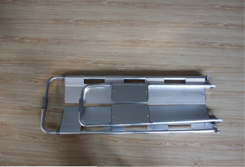 *Detachable design, rigid separation structure, transfer fracture and serious injury patients. The two ends are equipped with clutch devices, which can be separated into left and right parts. The side switch is easier to operate and provides better protection for the wounded. The stretcher is quickly shoveled into or removed from under the patient without moving the patient.