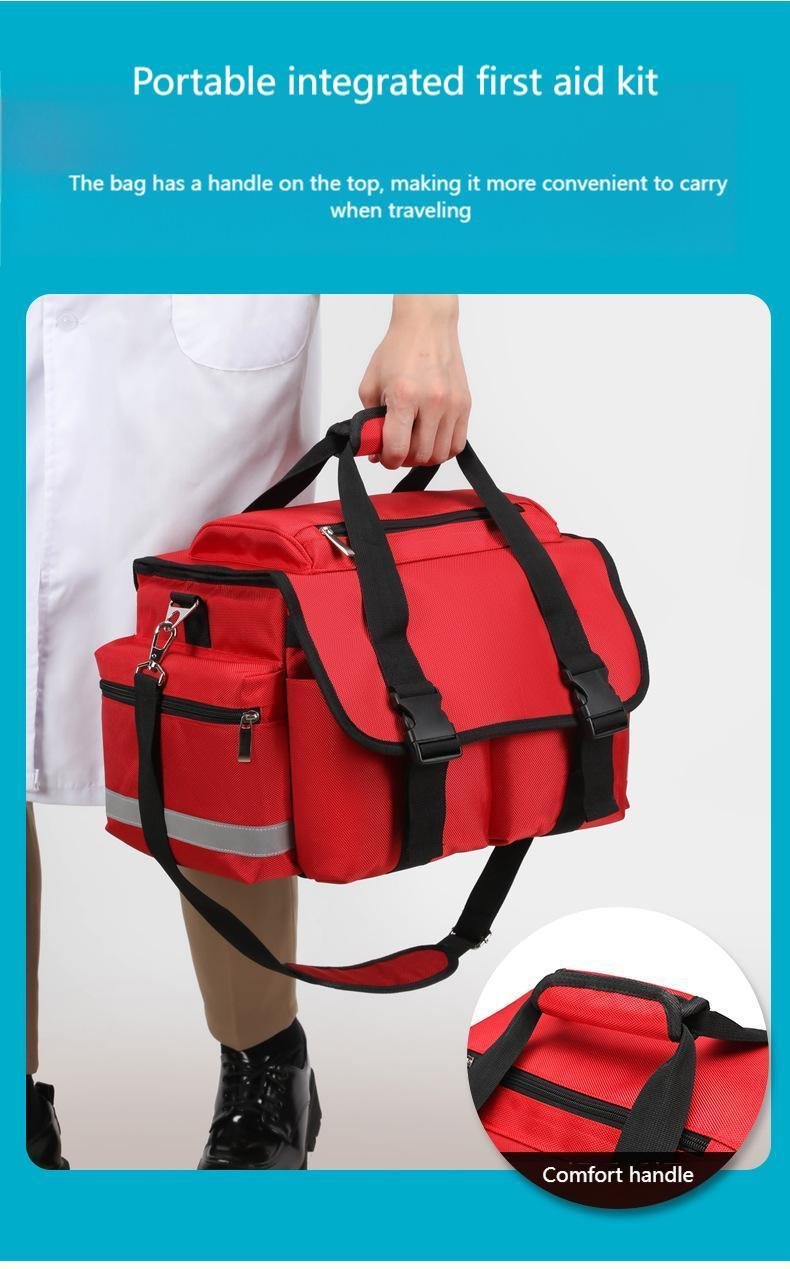 Model RH-GBS107 Ambulance First Aid Bag is a professional emergency medical bag designed specifically for ambulance and pre-hospital rescue use. Made from durable, heavy-duty fabric, this high-visibility first aid bag features multiple organized compartments for efficient storage and rapid access to essential medical supplies. With reinforced handles and an adjustable shoulder strap, it offers excellent portability for paramedics and emergency responders. Ideal for ambulances, hospitals, clinics, and emergency rescue teams, the RH-GBS107 emergency medical bag enhances response efficiency and supports reliable, professional emergency care.