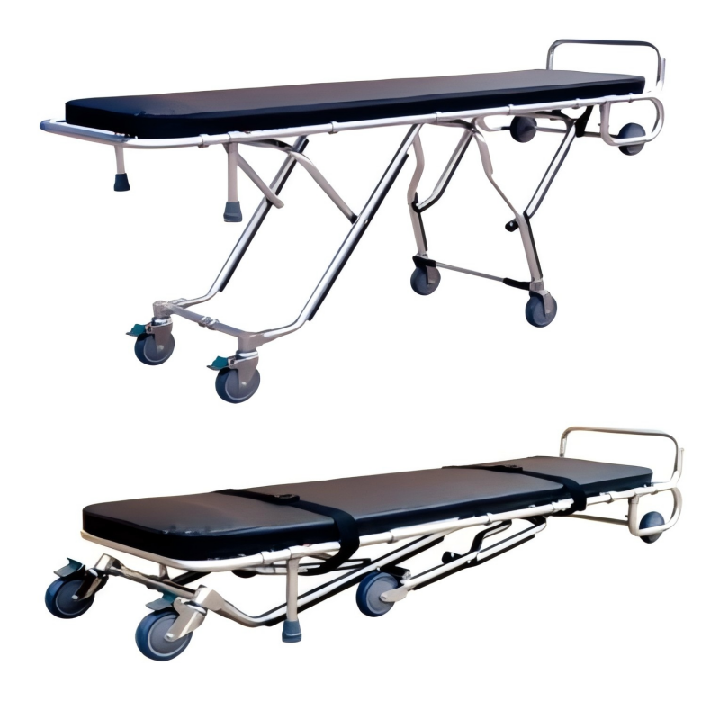 *The mattress is seamless welded with sealed high density polyethylene coated nylon material,it ‘ s waterproof,thickness 35MM.Only one medical staff is needed to push the stretcher onto the ambulance.