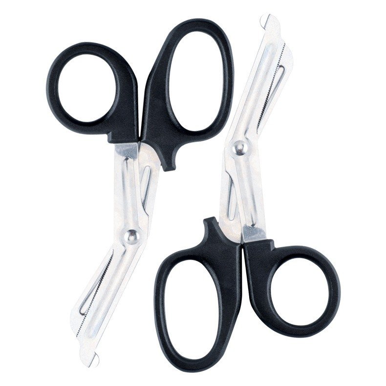 The scissors have ergonomically designed handles that ensure a comfortable grip, even during prolonged use. The sharp, high-quality blades are ideal for cutting through medical tapes, bandages, gauze, and other materials typically found in first aid kits or emergency situations. The durable, multi-purpose design ensures safe and easy handling, making them suitable for both adults and children.