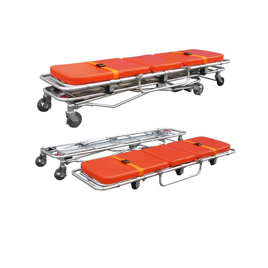 *This multifunctional automatic loading stretcher has varied heights,It ‘ s made of high-strength aluminum alloy thick-wall pipes.