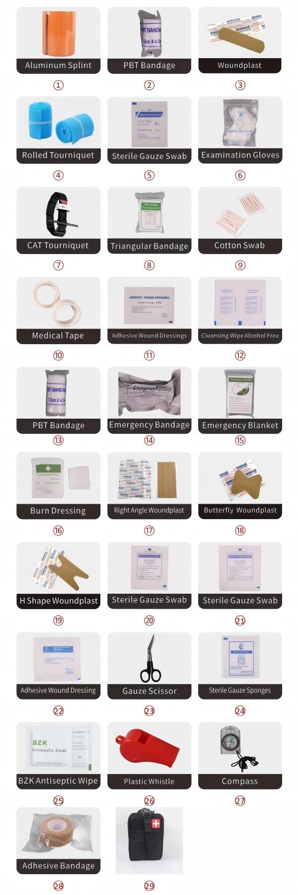 29 | First aid kit (empty) | 20*15*9CM | 1pc |