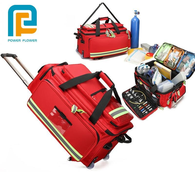 Red Rolling Emergency Medical Duffel | High-Visibility First Aid Bag (66x45x35cm)