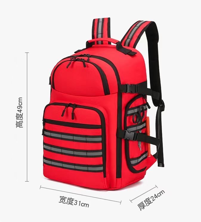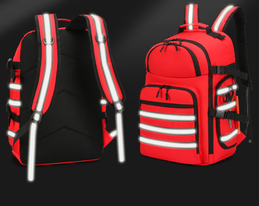 Crafted from durable tear-resistant fabric, it features prominent reflective strips (boosting visibility in low-light or high-traffic emergency situations) and multiple organized compartments (for sorting trauma kits, first aid supplies, and essential medical tools). Padded adjustable shoulder straps provide all-day comfort for long shifts, while secure zippered pockets protect supplies during transit.