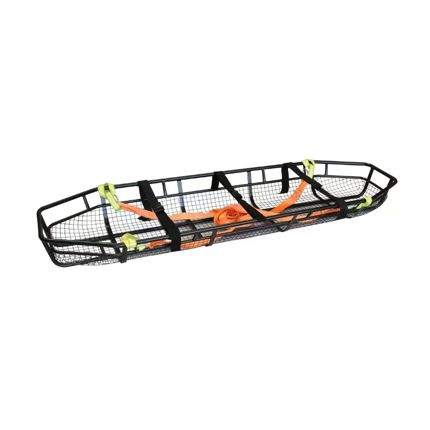 *The stretcher is constructed with a view to the particularities of first aid, such as rugged mountain, air or sea rescue. The robust frame, simple and reliable device allows the operator to safely and quickly take first aid measures. The hook can be connected with the hook on the aircraft to achieve field rescue. Stretchers are equipped with seat belts and cushions. Made of stainless steel tubes and nets, it will not cause additional harm to the patient, and is stronger than ordinary stretchers, and can be used with plate stretchers.